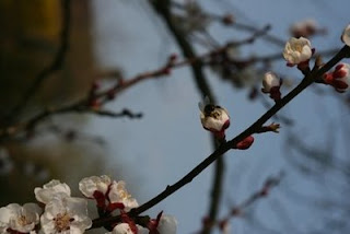 En regardant de plus près les fleurs de notre abricotier, vous pouvez apercevoir une auxilliaire très précieuse…