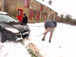 Julie et Laurent, Axelle et Thibault garderont un bon souvenir de leur séjour en Normandie que la neige n’a pas épargnée en cette fin décembre. Ce n’est pas tous les jours qu’on est obligé de manier pelle et râteau pour sortir de notre cour!…